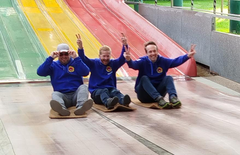 Der Vorstand hatte geladen - mit fast 40 Personen (nicht alle haben sich auf unser Gemeinschaftsfoto getraut...) waren wir bei nahezu perfektem Wetter im Ketteler Hof. Nach dem Treffen um 10 Uhr ging es los - einzeln oder in kleinen Gruppen wurde das Gelände erkundet. Nicht nur die Kids hatten viel Freude auf den verschiedenen Rutschen, der Rodelbahn und den großen Hüpfkissen. Um 13 Uhr konnten sich die Kinder auf Vereinskosten an Pommes und Currywurst oder Nuggets stärken. Die Pause verging wie im Flug und die nächsten Highlights wurden angesteuert. Es war ein rundum gelungener Tag, der allen Beteiligten viel Spaß gemacht hat!